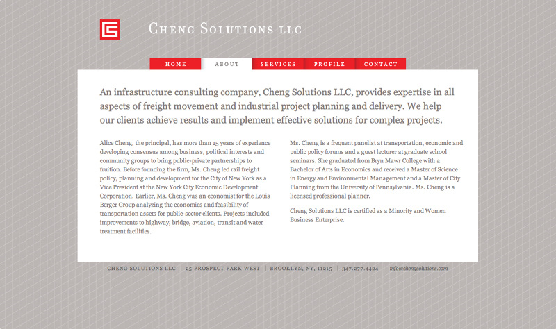 Cheng Solutions, LLC is an independent transportation consulting firm focused on transportation planning, economics, and asset management. They have helped private and public-sector clients manage changes in port, rail, ferry, transit, air cargo, and short-sea shipping projects in the New York Metropolitan area.